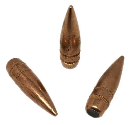 这是M118的改进型,LR的意思是“远程”,M118LR采用新的175格令尾锥结构空尖弹(BTHP),但弹尖的孔极小,实际上就是从后往前包被甲的新工艺,这种加工方式比起传统的从后方将弹芯挤入被甲的方式可以减少铅芯的形变,可获得更好的一致性,从而提高射击精度。现在这类弹头结构又被取名叫开尖弹(OTM)。