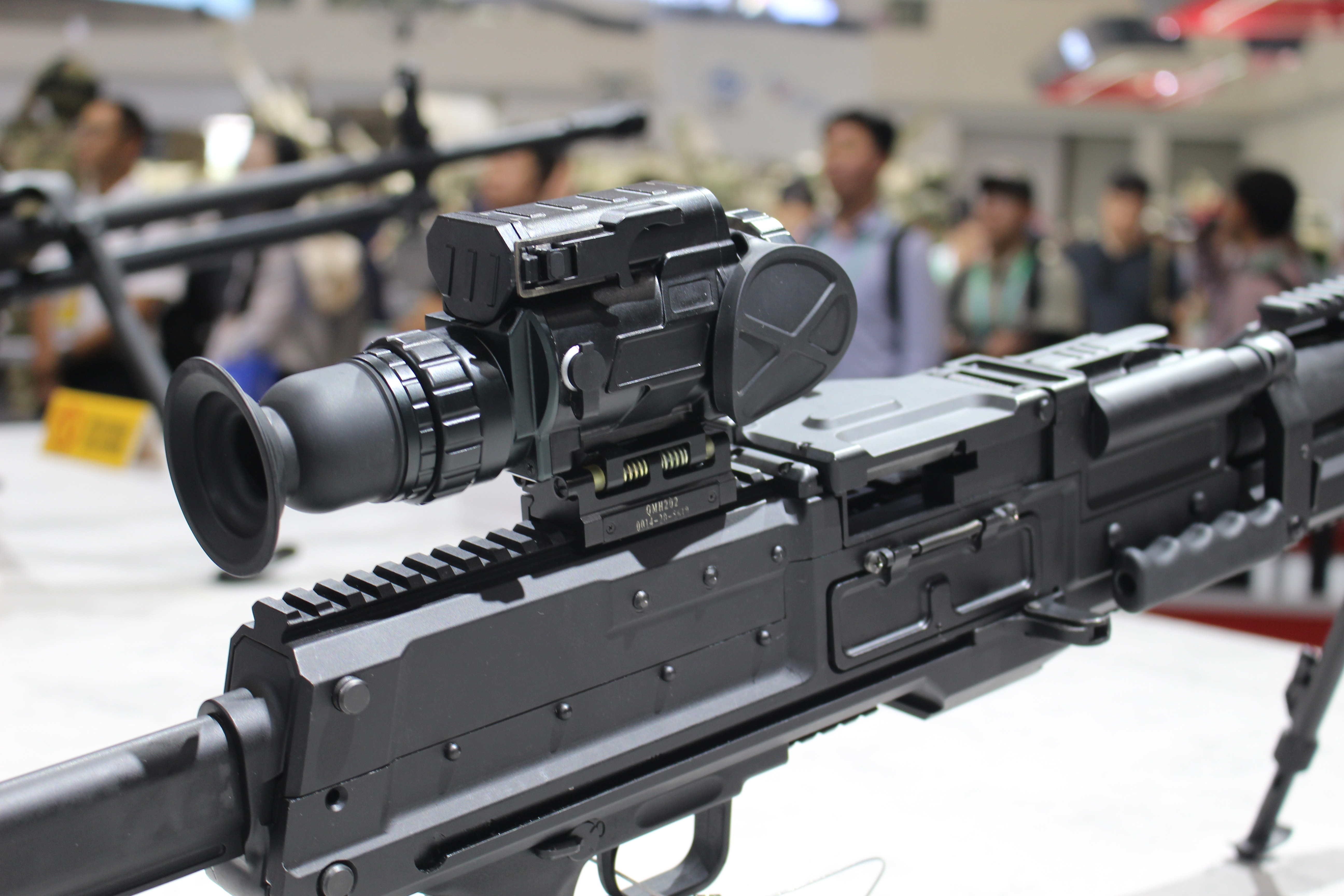 8.6mm口径(即.338)通用机枪的传闻其实一直有,不过在2024年珠海航展上首次展出后,得以证实它的存在。目前该枪的相关信息不多,机匣上也没有暂时型号名称,但从展出样品来看,结构原理与QJY201通用机枪相近,所以应该也是与QJY89式重机枪相近的管退与导气混合的自动方式。无独有偶,美国的SIG MG338和RM338也同样采用了类似的混合动力。
