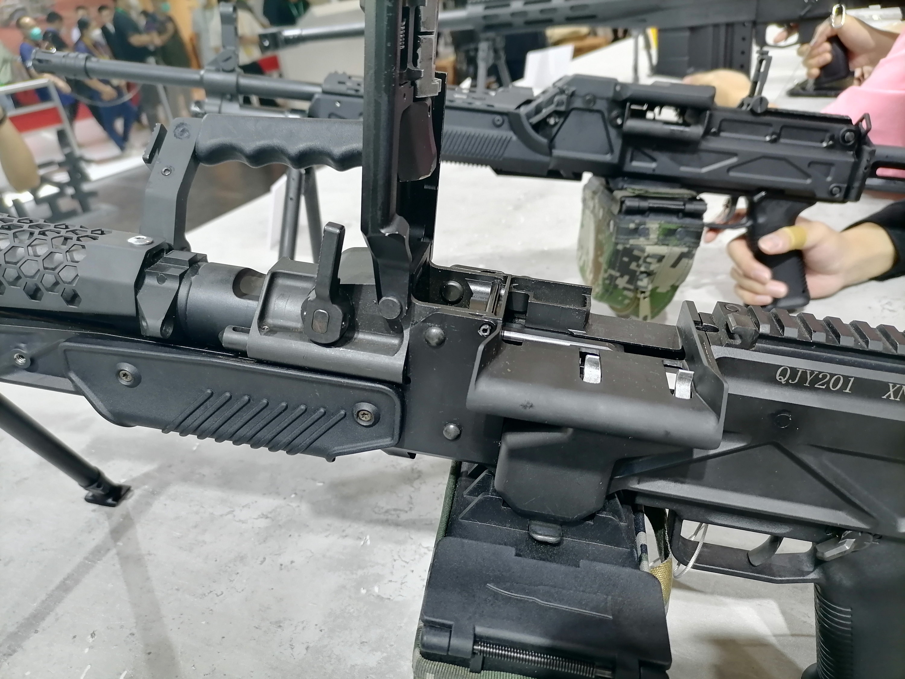 QJY201式通用机枪于2020年正式定型,并在2021年9月的珠海航展上首次公开亮相。这是一款轻量化通用机枪,发射7.62mm NATO步枪弹,包括国产DJP201机枪弹。该枪即可使用两脚架,作为轻机枪跟随步兵冲锋,亦可安装在稳固的三脚架上作为重机枪使用。