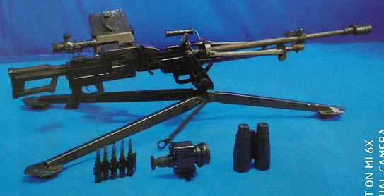 为使QJZ171式重机枪具有昼夜作战能力,配备了新式白光瞄准镜和红外瞄准镜。白光瞄准镜放大倍率为5倍,重0.67kg,能对1.7m高的人体目标、2.3m高车辆目标、6.74mm宽装甲车辆目标快速测距,且使用方便。同时,配备了集观察、测距、瞄准于一体的红外瞄准镜,能在夜间识别1000m内的直立人体目标或1500m的车辆目标。