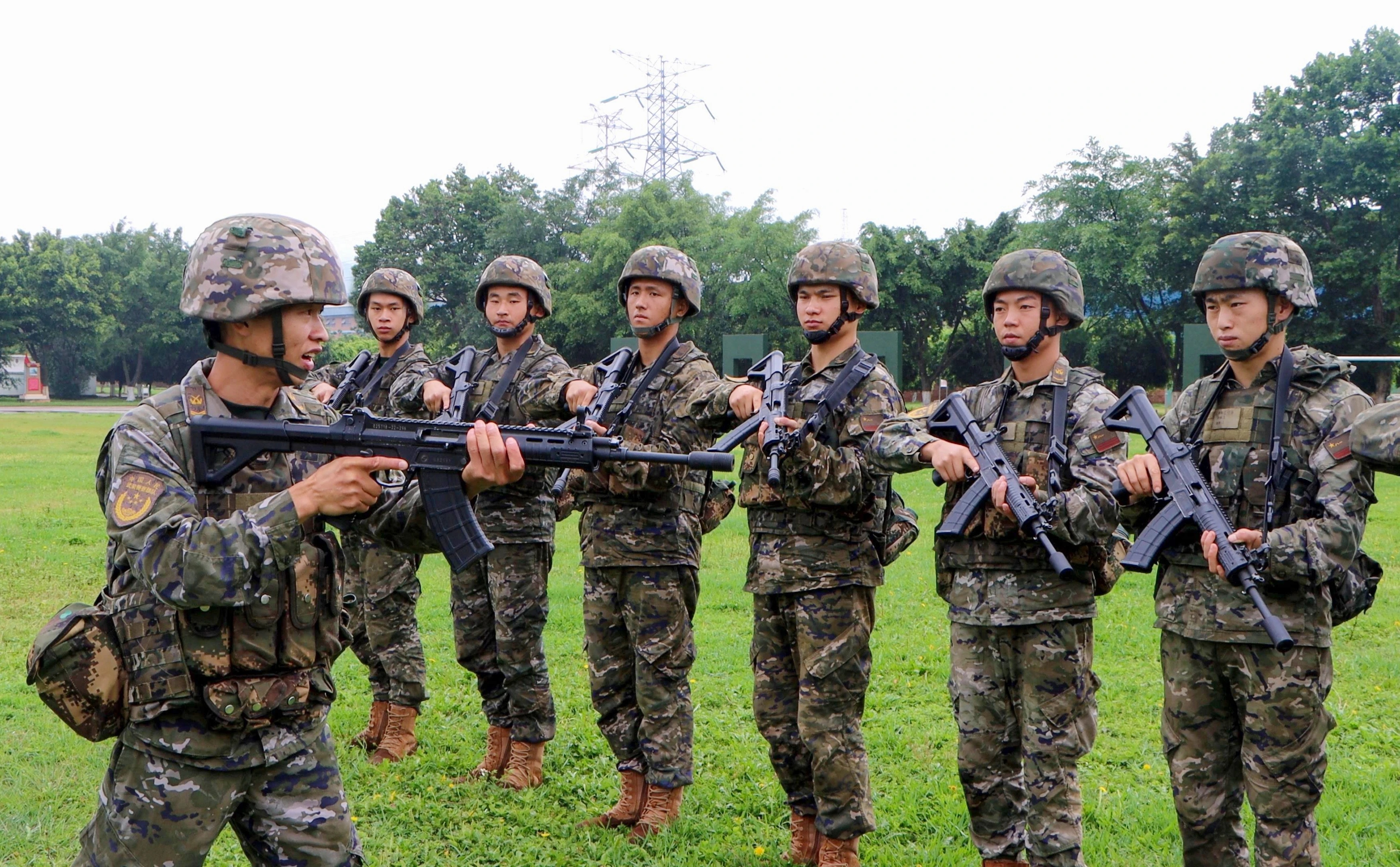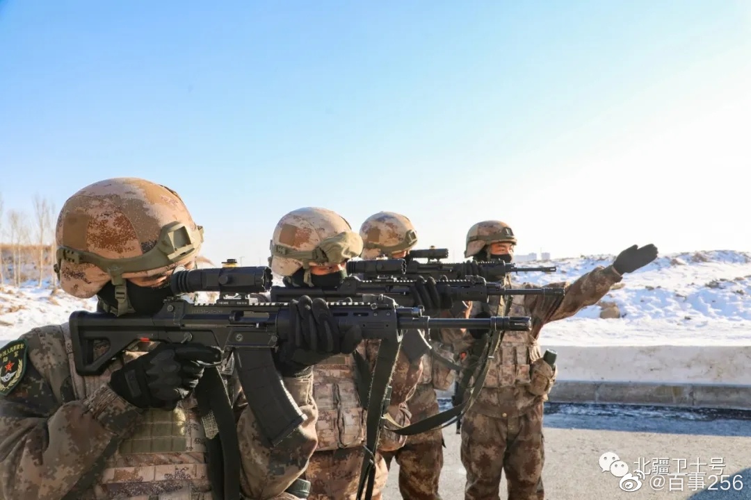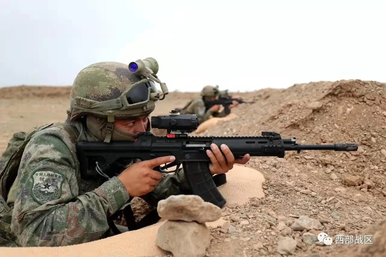 2021年海军陆战队的一张照片,图中从左到右分别为:QBZ192、QCQ171、QBZ192、QJB201和QBU191