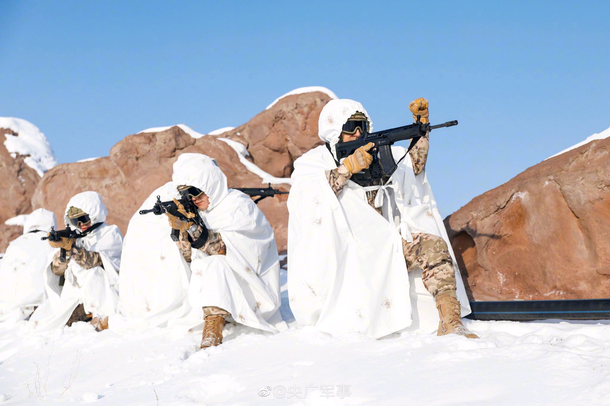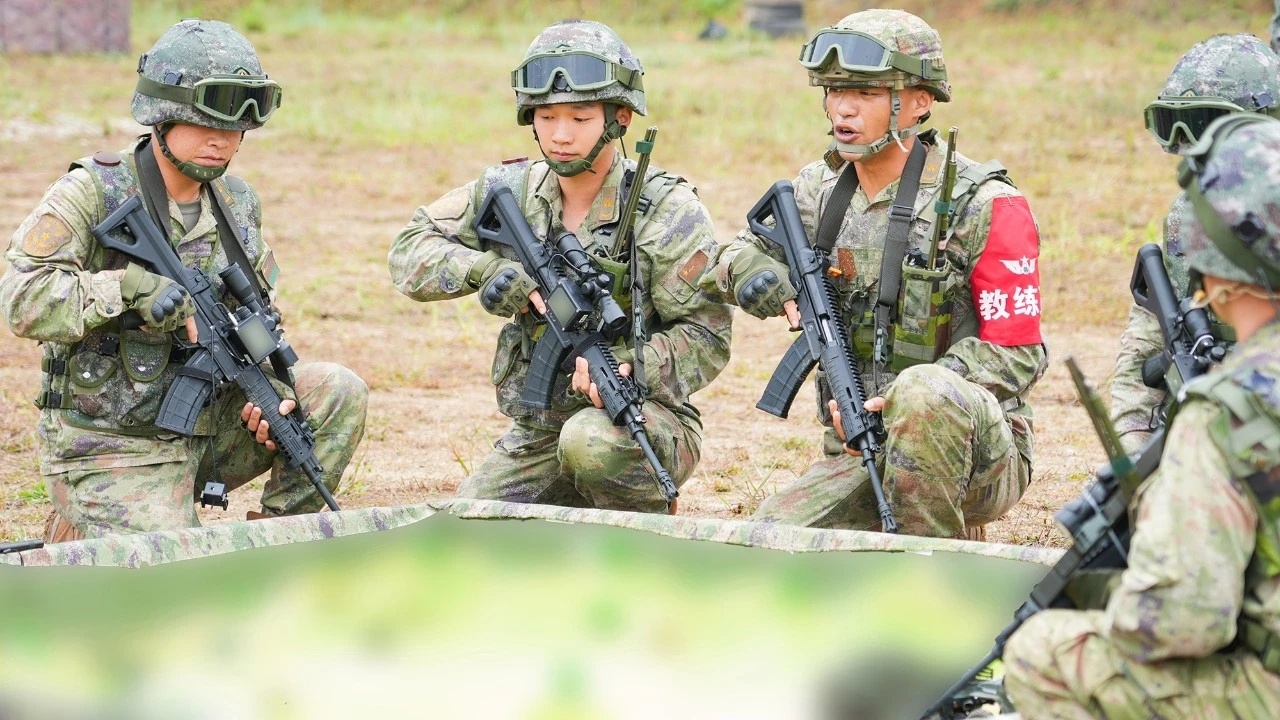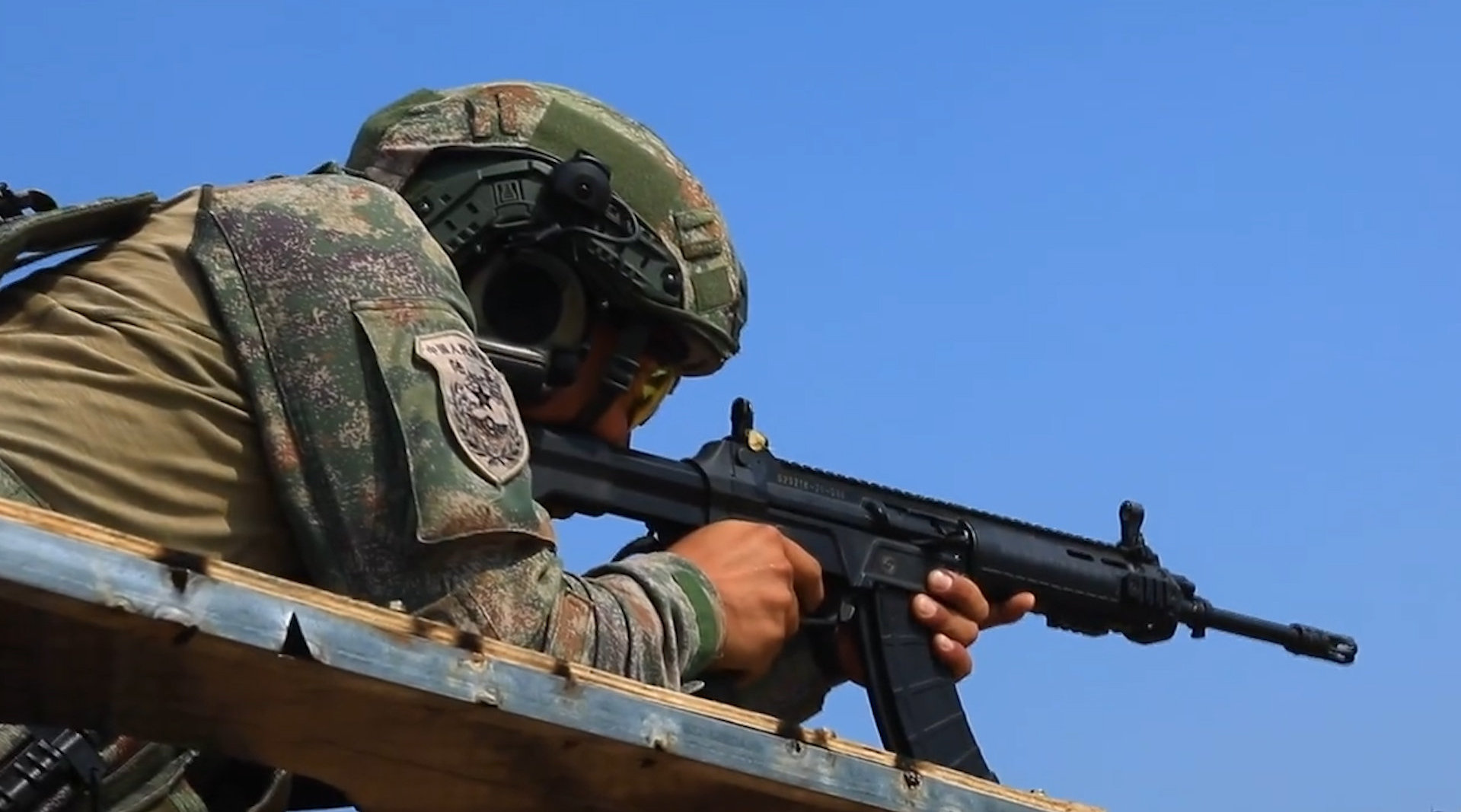 2021年海军陆战队的一张照片,图中从左到右分别为:QBZ192、QCQ171、QBZ192、QJB201和QBU191