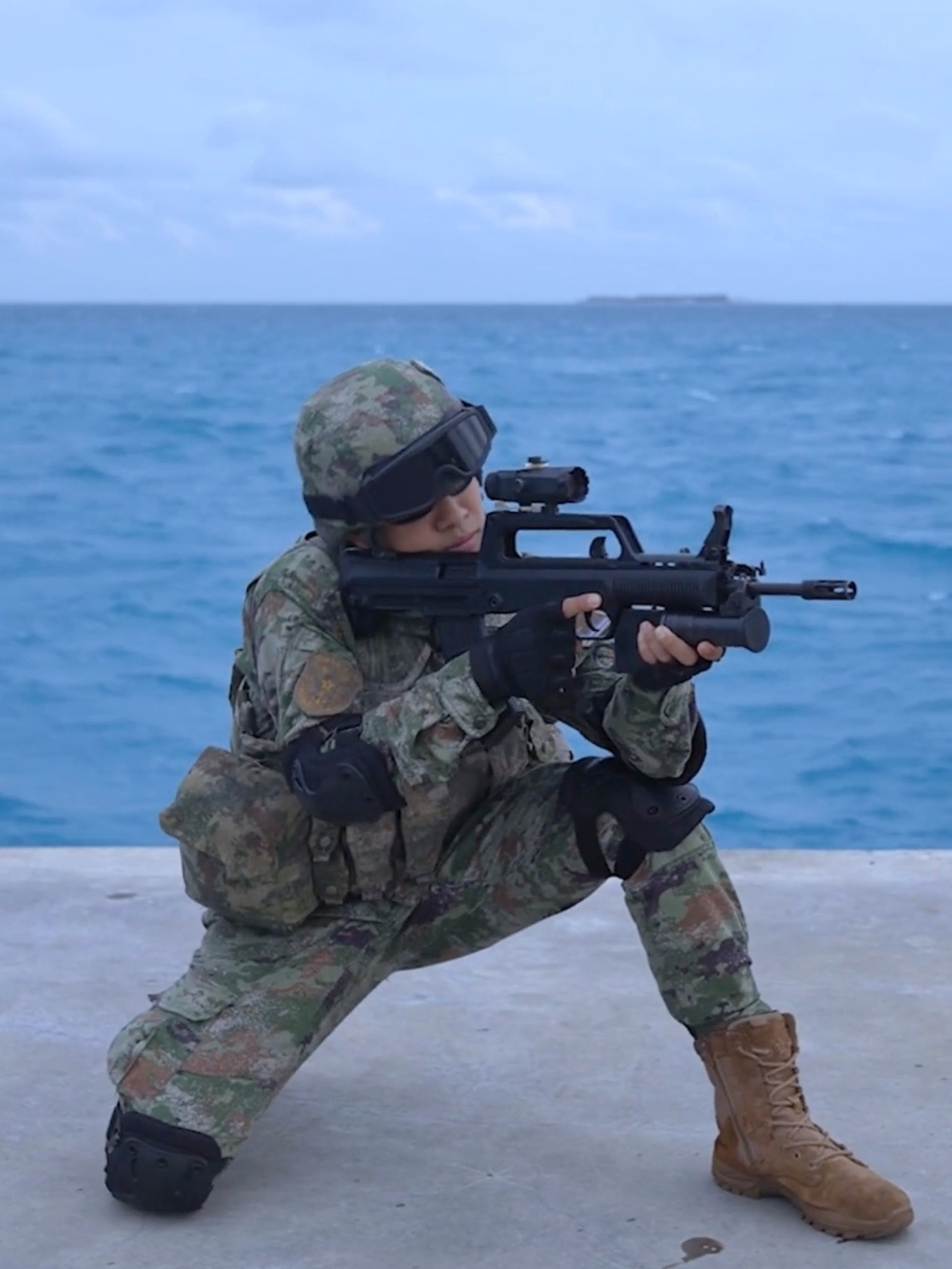 2014年1月南海舰队在为亚丁湾护航进行演习时,海军陆战队使用了QBZ95B-1短自动步枪