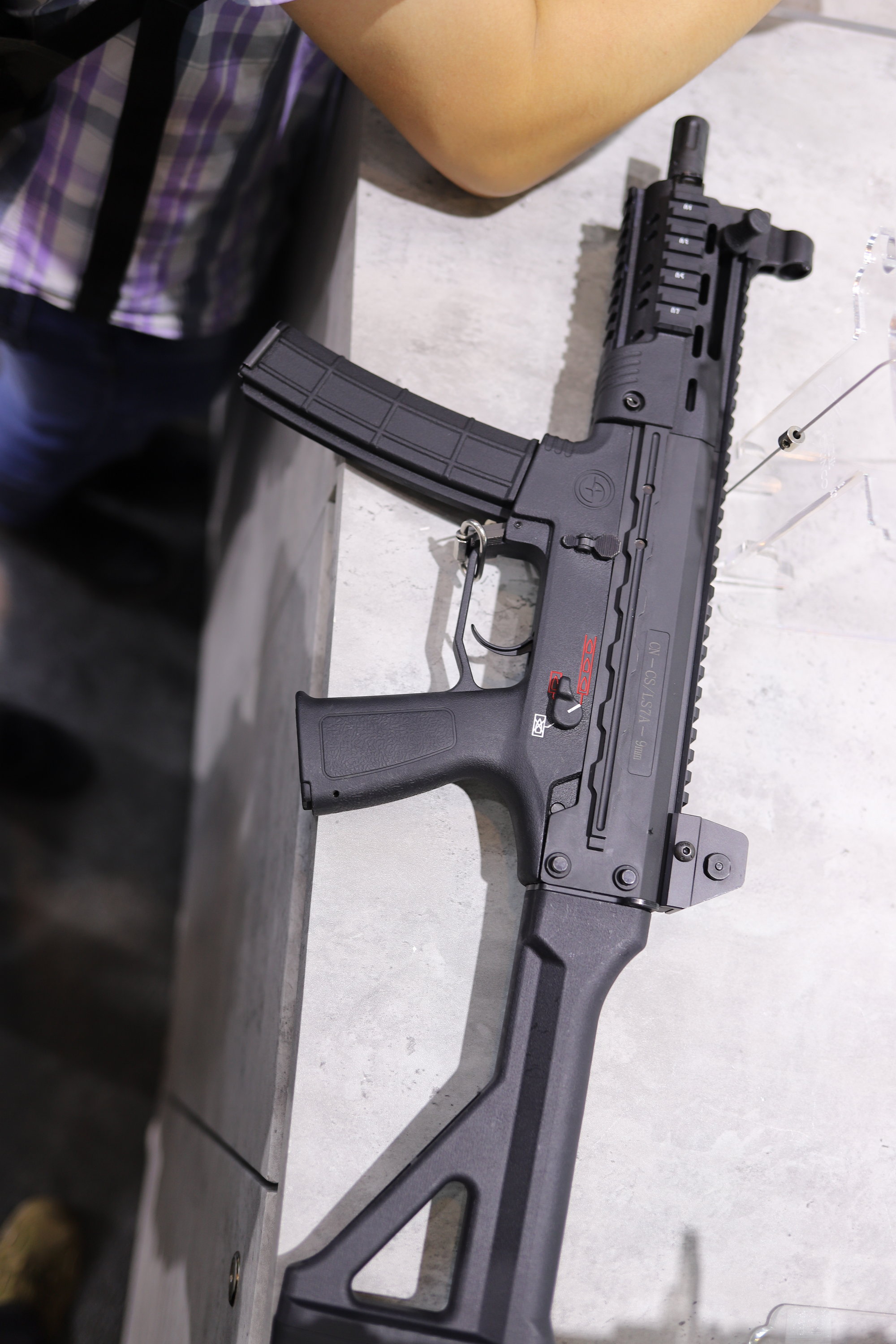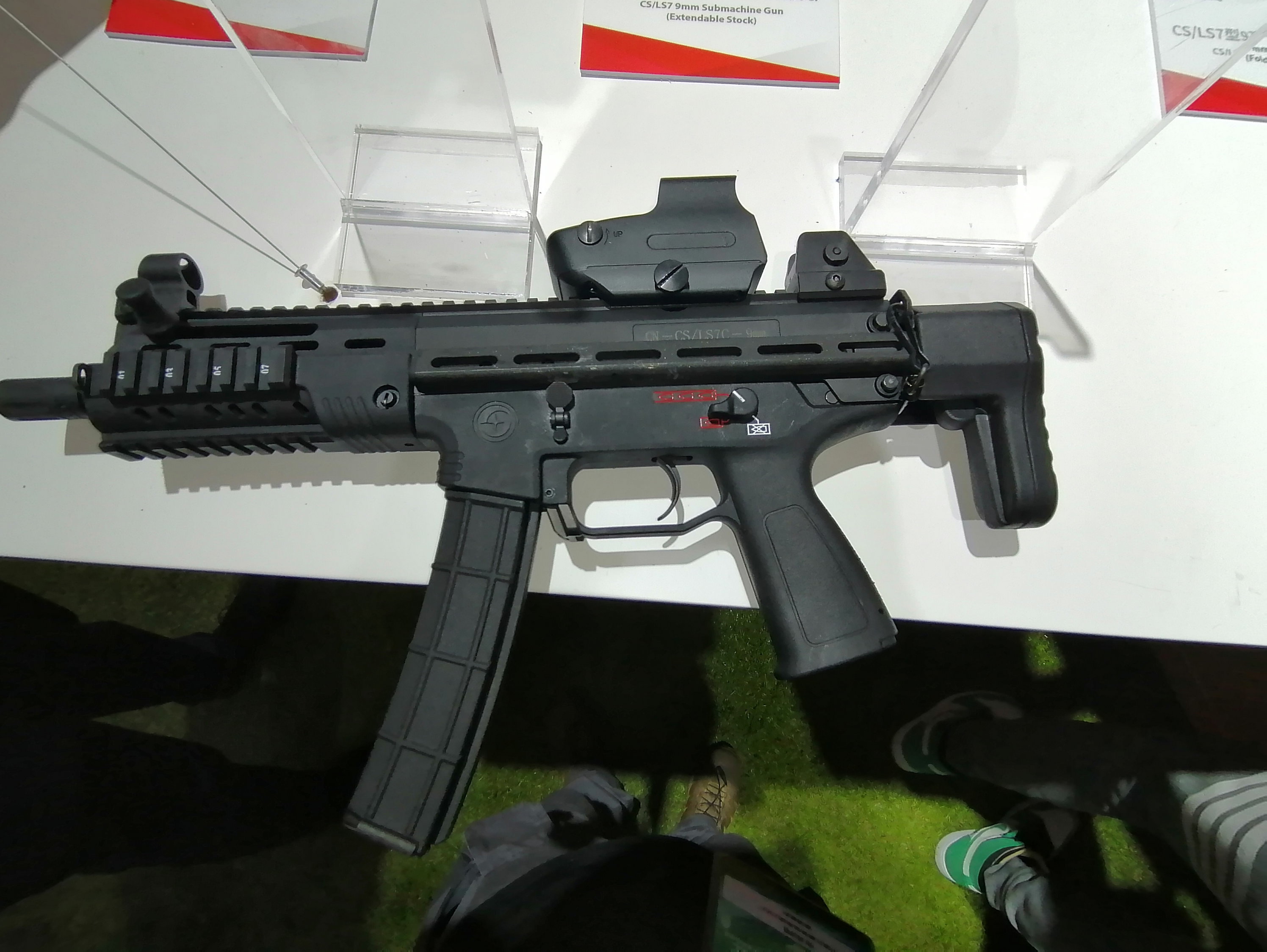 2018年“第二届世界警察手枪射击赛上”开幕式上的大形空包弹团体操表演中,由于站长本人所坐位置离得太远,但勉强能辨认出女警所使用冲锋枪是CS/LS7