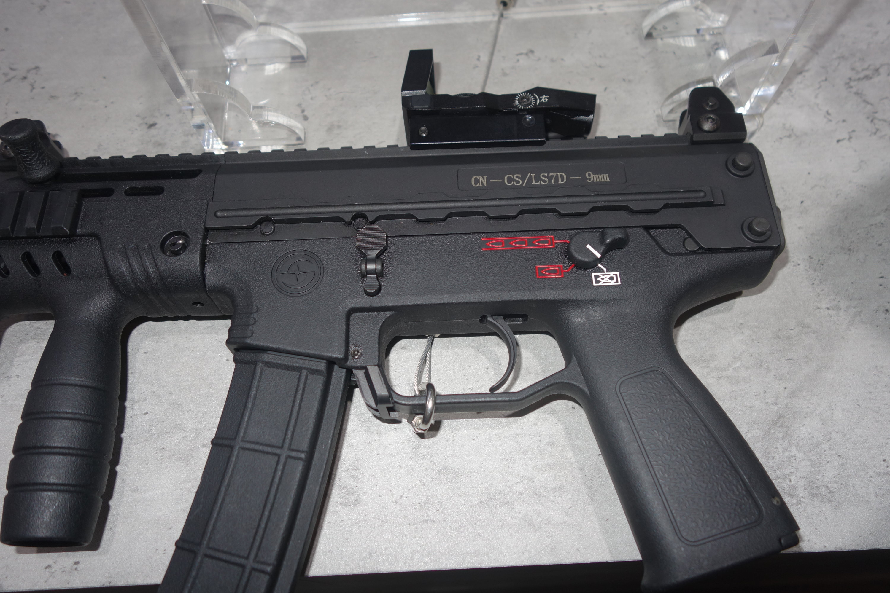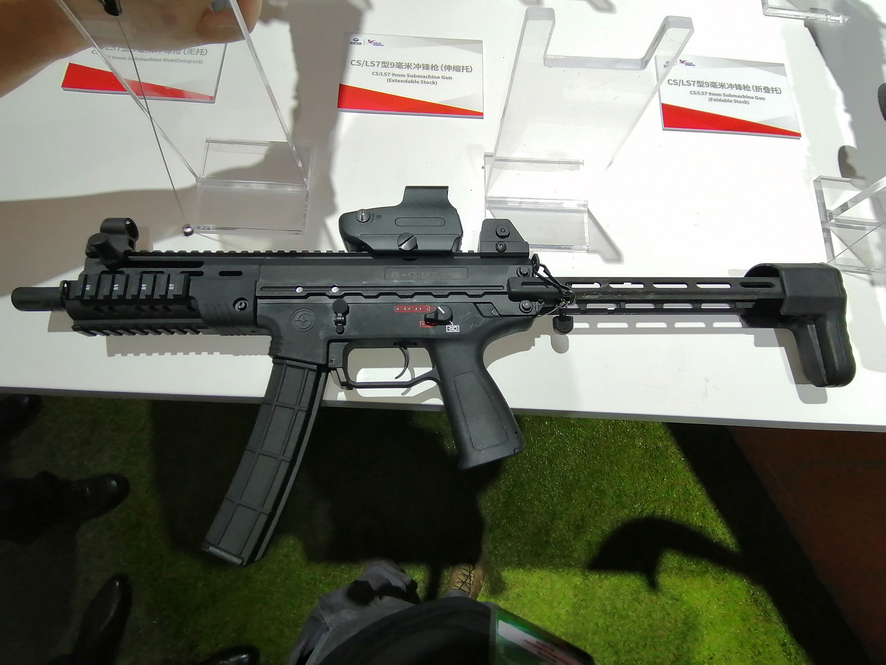 建设公司在2019年上半年的一次外贸产品的展示中,出现了一种右侧也有快慢机柄的CS/LS7,另外照片中还出现了一种类似MP5K的缩短型