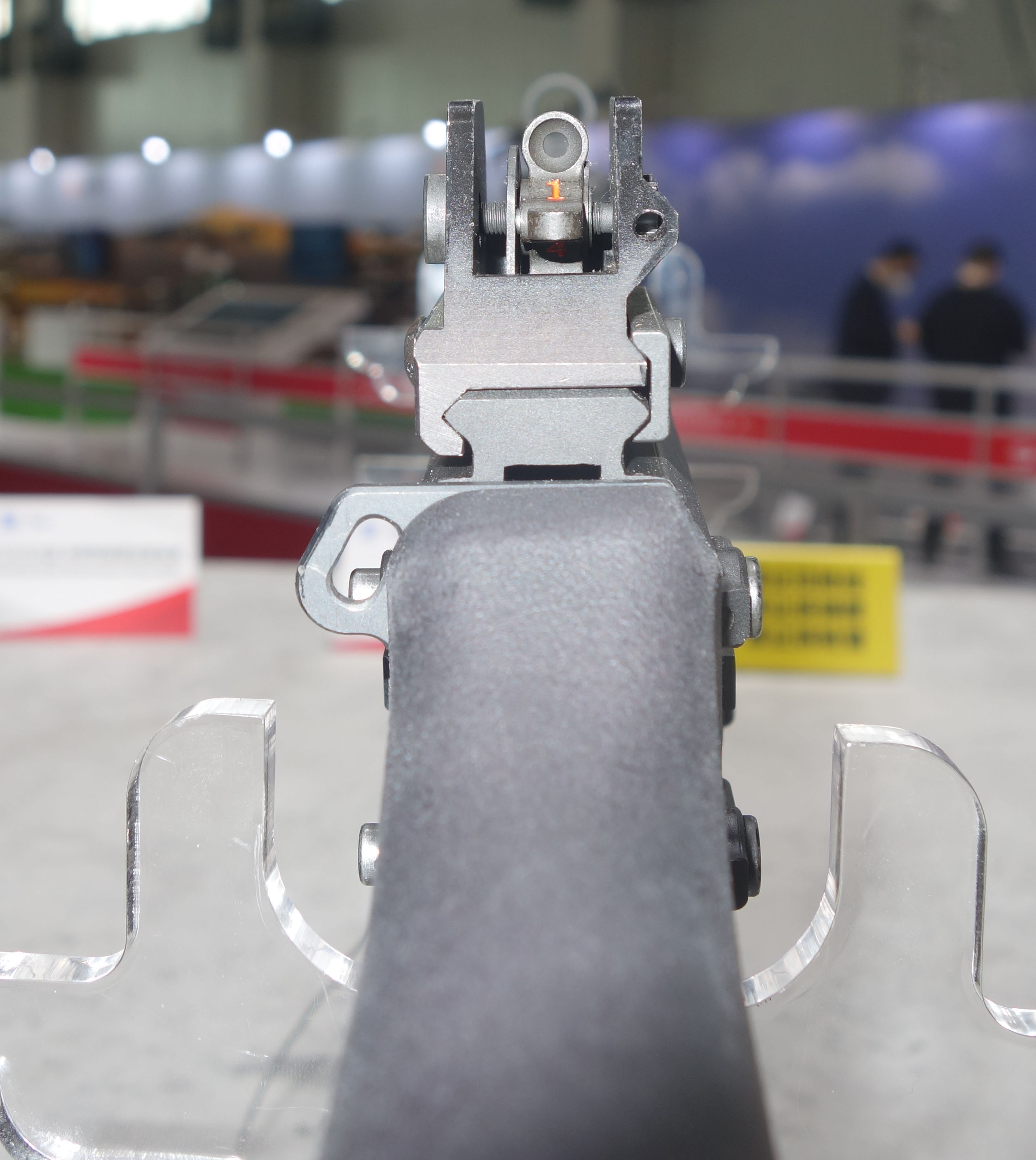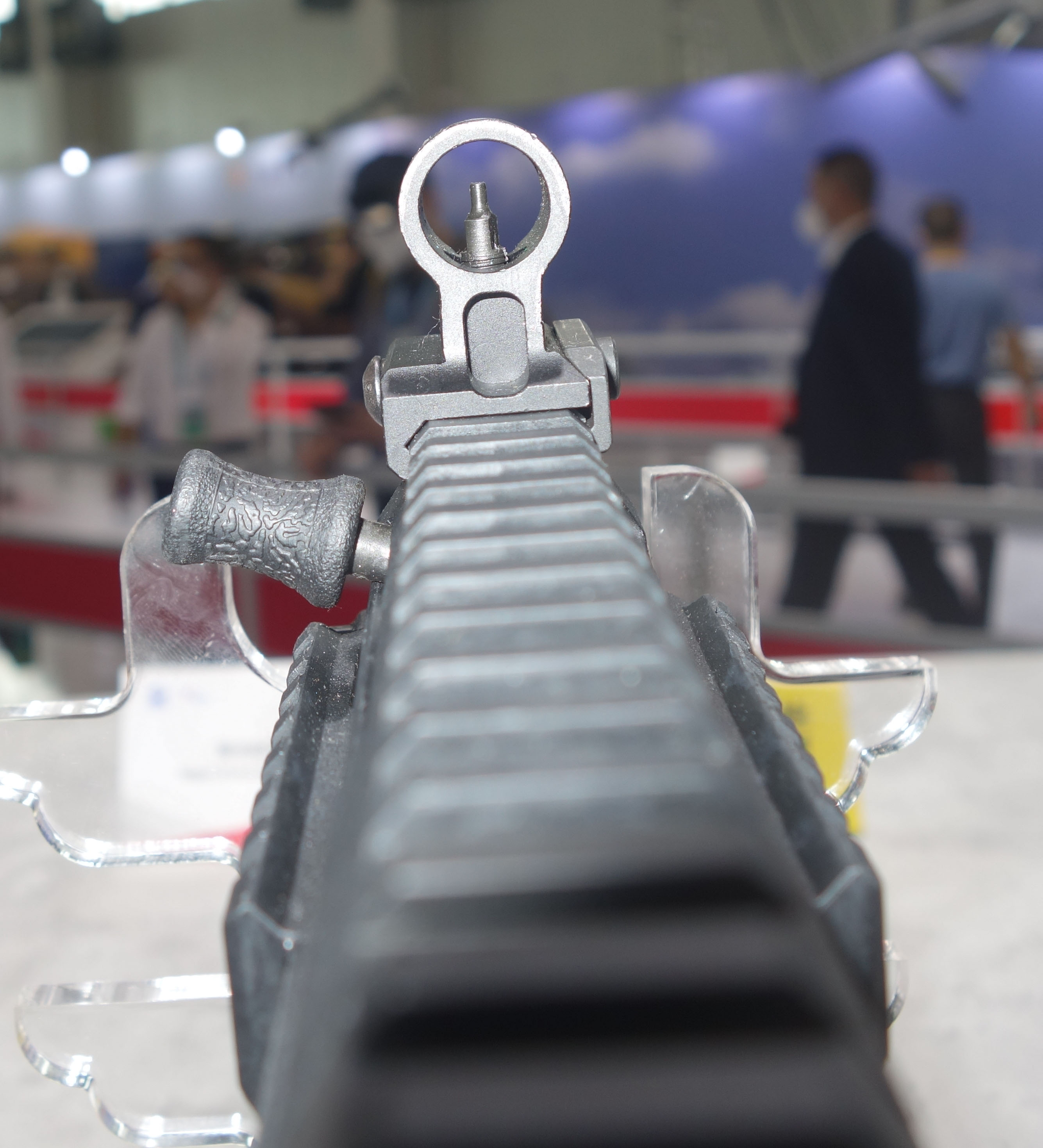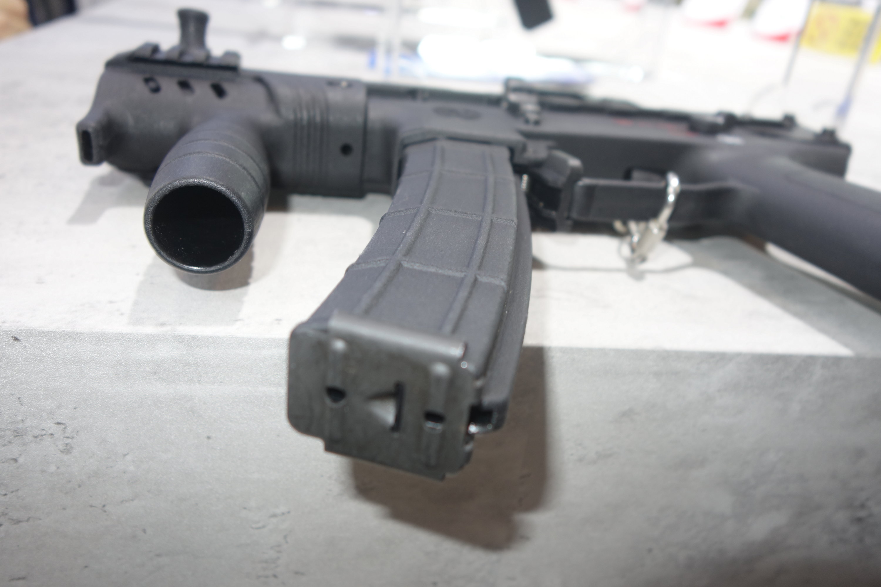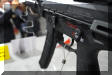 下机匣左侧有空仓挂机释放钮。机械瞄具是固定的,准星有护圈保护。枪托有两种类型,一种是伸缩式,其固定卡扣的设计是类似于MP5的绕轴转动的大拨片;另一种是折叠式的塑料枪托,从图片判断托底板似乎可以伸出。