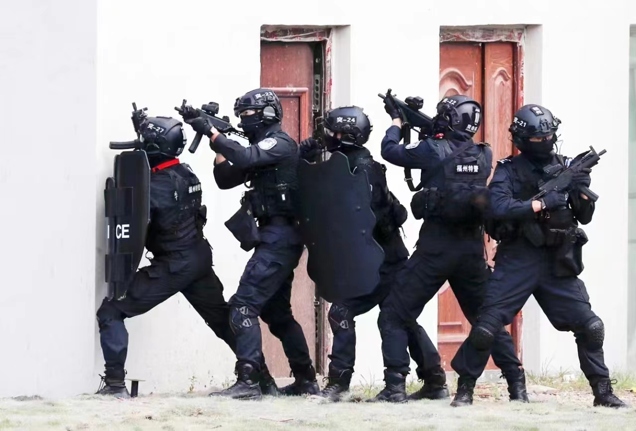 2023年福州特警的一组照片中出现的CS/LS7C冲锋枪,其中盾牌手手持猫猫盾,但上面没有画猫脸显得太单调,因此我在右图加了一笔