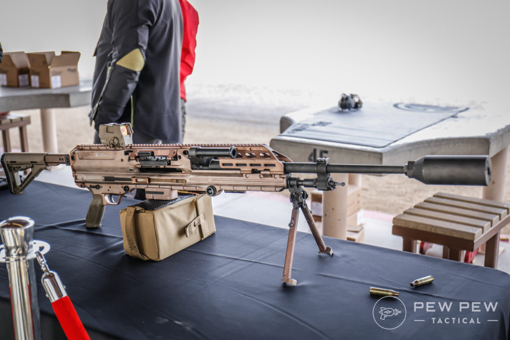 受通用动力(GD-OTS)的.338口径LWMMG机枪探索的影响,以及基于阿富汗的实战经验,步兵需要一种填补射程在M240之上、机动性高于M2HB的步兵武器,美国特种作战司令部USSOCOM在2017年正式启动了官方的LWMMG计划,其后又将项目名称更改为LMG-M(Lightweight Machine Gun - Medium,轻型中口径机枪),其目标是开发一种单兵携带、射程是M240两倍、同时减轻后坐力和重量的新武器。而SIG SAUER(此时已经算是美国企业)看中了该项目的前景,立即投入数百万美元去开发.338机枪,并在2019年就公开展示了当时命名为MMG-338的样枪(后来更名为MG-338)。