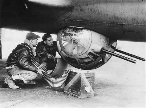 B-29轰炸机因为采用增压舱,所以M2机枪的炮塔为遥控韧皮操作,最初是双联机枪,后来改为四联机枪,操纵的枪手就坐在炮塔后方
